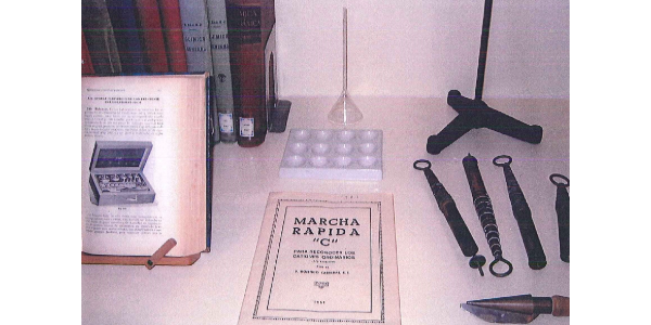 • Características:​ Prácticas químicas : para cátedras y laboratorios / por el P. Eduardo Vitoria, S. J.​ El ejemplar expuesto ha sido donado por el Sr. Francisco García Estartús.​ Pertenecen a los cursos de los primeros años 40, en plena posguerra española​
