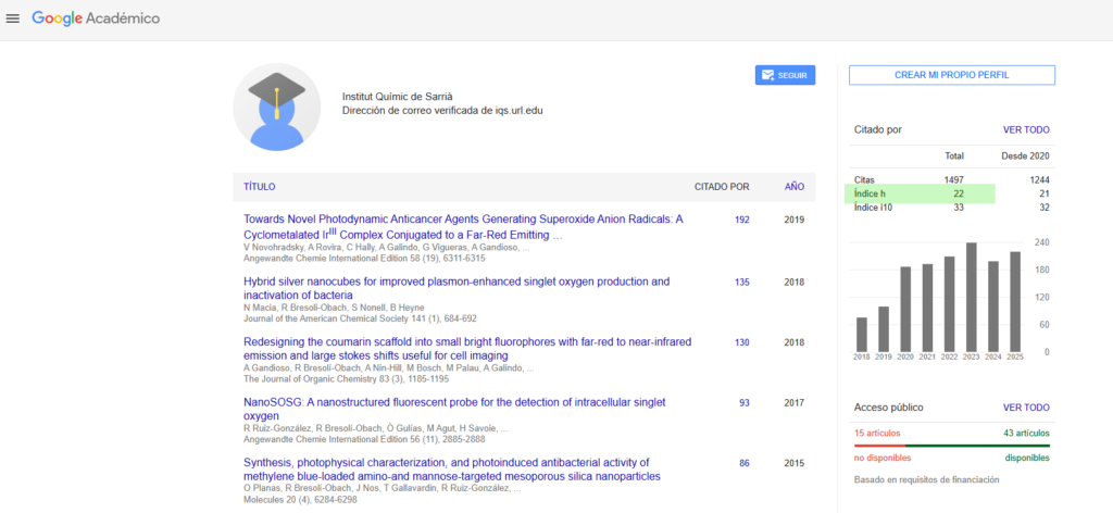 - En el panel derecho, encontrarás el índice H y el total de citas.